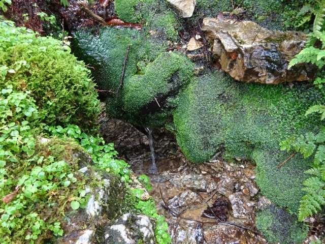 雨降りそうな中、馬駆場からずっとトラバースして、あきらめかけた頃、水が流れているのを見つけて、