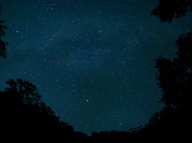 巨木の葉で覆いきれない夜空に目の前の根洞の流れを写したように天の川がのたっていた。