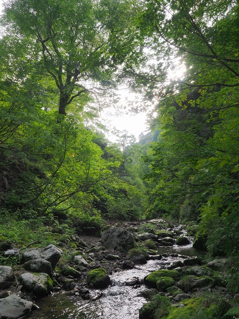 やっと出てきた小滝を難儀して越えるとまた、ほんの少しだけ川幅を狭めて穏やかな流れが続くのだ。