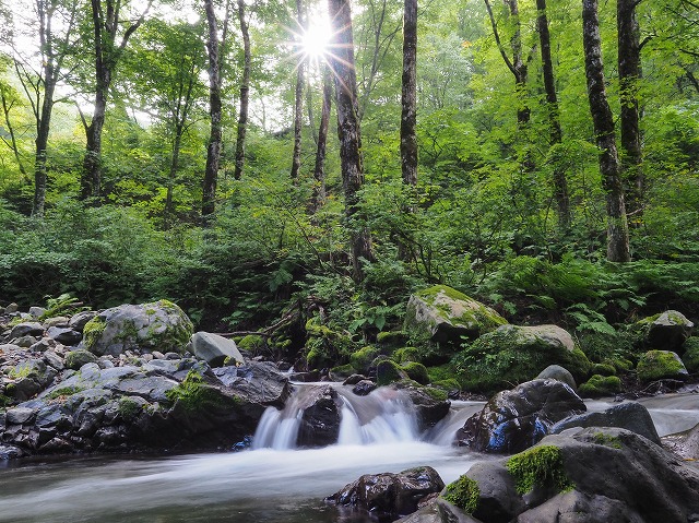 巨木を縫う穏やかな流れに体も心も安らいでゆく。