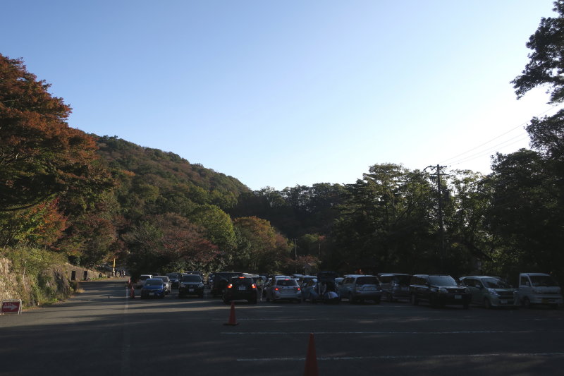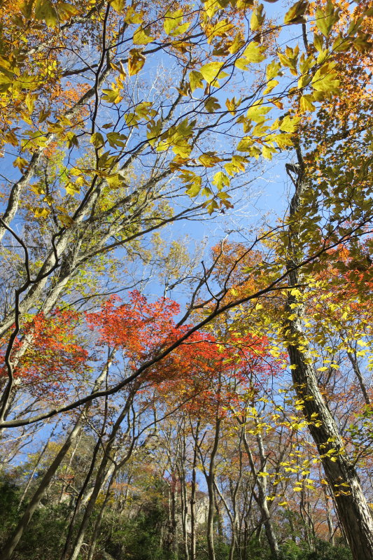 まだ少し早いのか、今年はダメなのかわからないが、それでもそれなりに色付いた木々の赤や黄が、谷間に差し