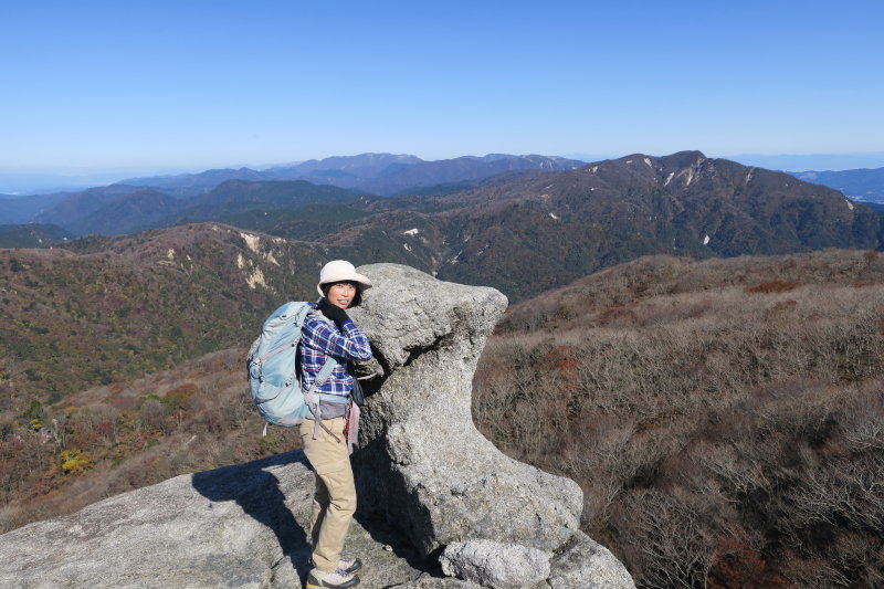 キノコ岩では先着していた人が、どこから来たのかと驚いていた。キノコ岩からの展望は全開。遠く御嶽や白