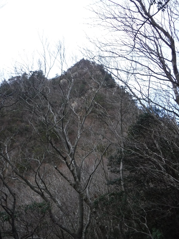 それにしてもこんなマニアックな場所のためにテープがあるのかと思っているとテープ道は続いている。水沢岳東尾根に乗る感じなのでそのまま進むことにした。植林の急な上りだが問題なく歩ける。700mあたりまで来ると植林が終わり鎌ヶ岳が見える。800m付近になると正面に岩に守られた水沢岳前衛峰の尖った山容が見えてくる。厳しそうに見えるが、大丈夫かと思いながら進むと。ナメコを見つける。乾燥しているので手でむしって採取し、味噌汁の具にしたらおいしかった。