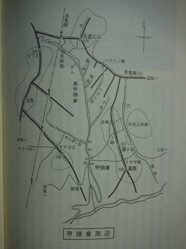 カワタニ越、ミヤマ峠、男鬼越は甲頭倉の呼び名です。