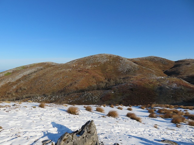 ように歩きやすいのですが。それでも左に霊仙山、前方に最高峰を眺めながらの尾根歩きは気持ちいいです。途中で