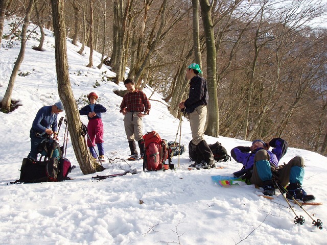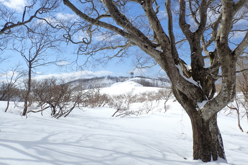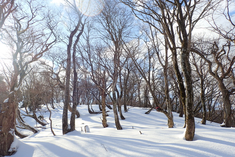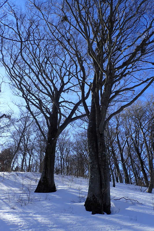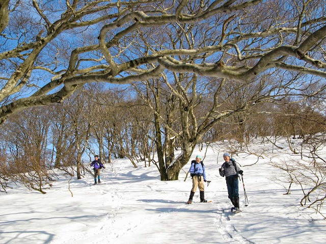 とがあるので注意が必要だ。ここは展望を捨てて、北側斜面のブナ林を楽しみながら歩く方が得策と言える。