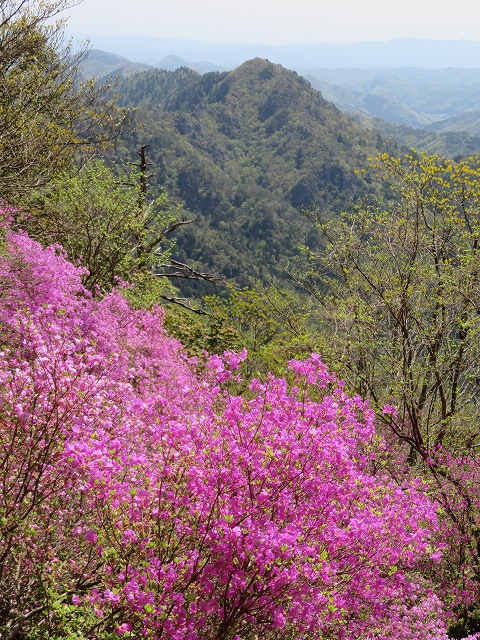 西の向山から東の毘沙門山まで、いわゆる多紀アルプスは修験の道で、あちこちでヒカゲツツジが素晴らしいです。