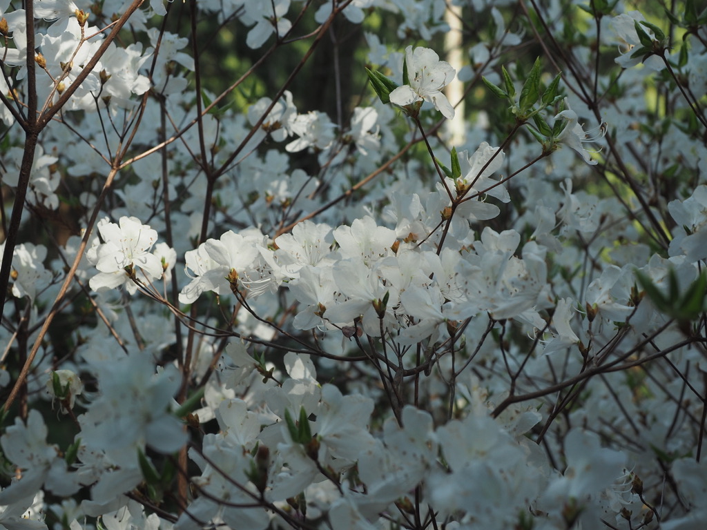 同じく無名の裏山でヒカゲツツジと同時に咲いているシロバナコバノミツバツツジですが、この花々の咲き具合も素晴らしいものがありました。