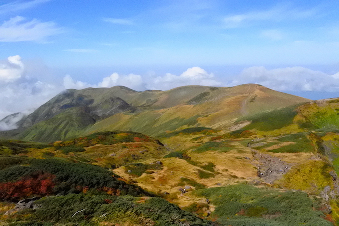 秋田駒ヶ岳はガスガスだったのですが、乳頭山と鳥海山は絶好の快晴に恵まれ、過去の山行の中でも非常に印象深い山行になったのでした。