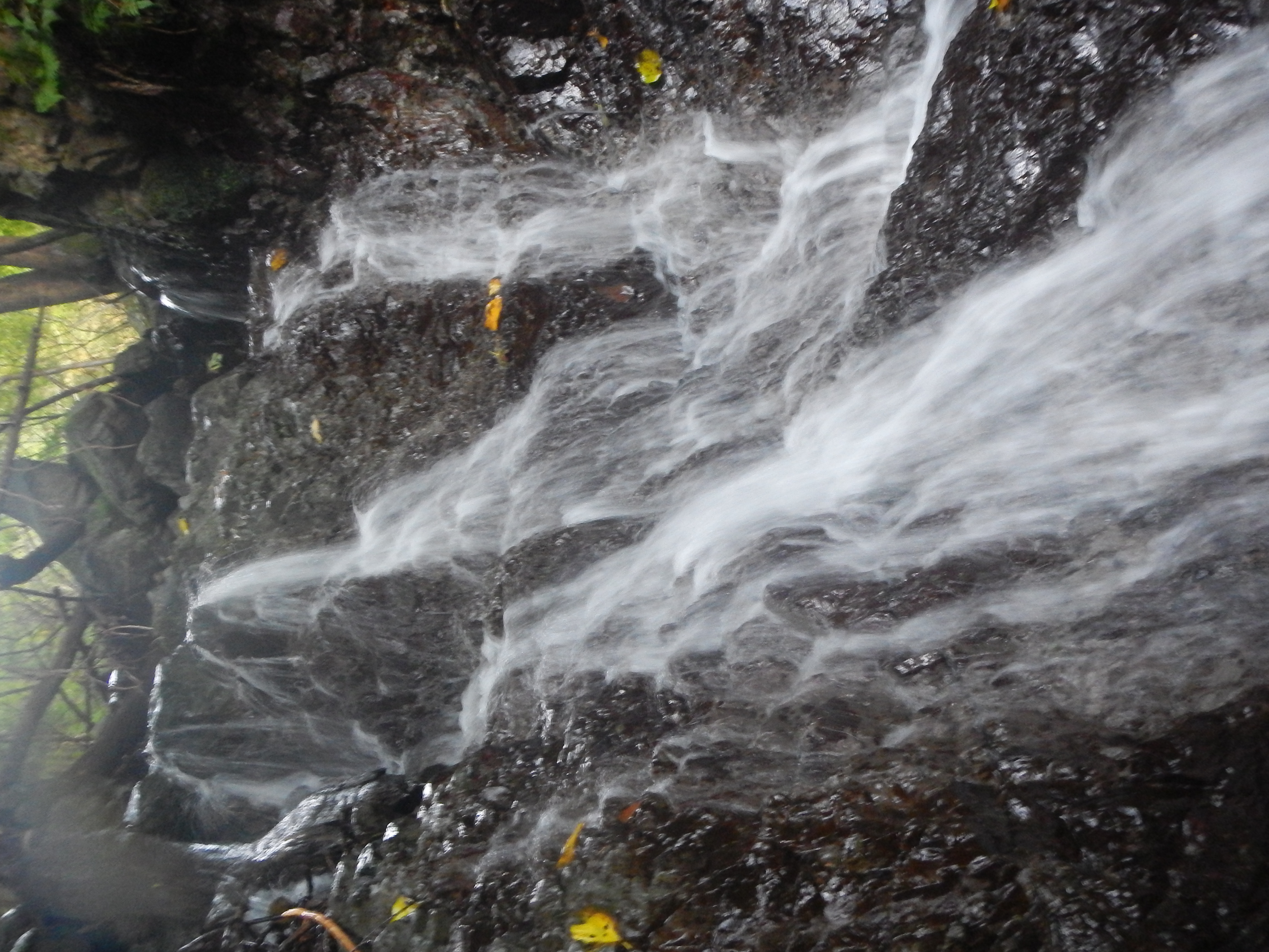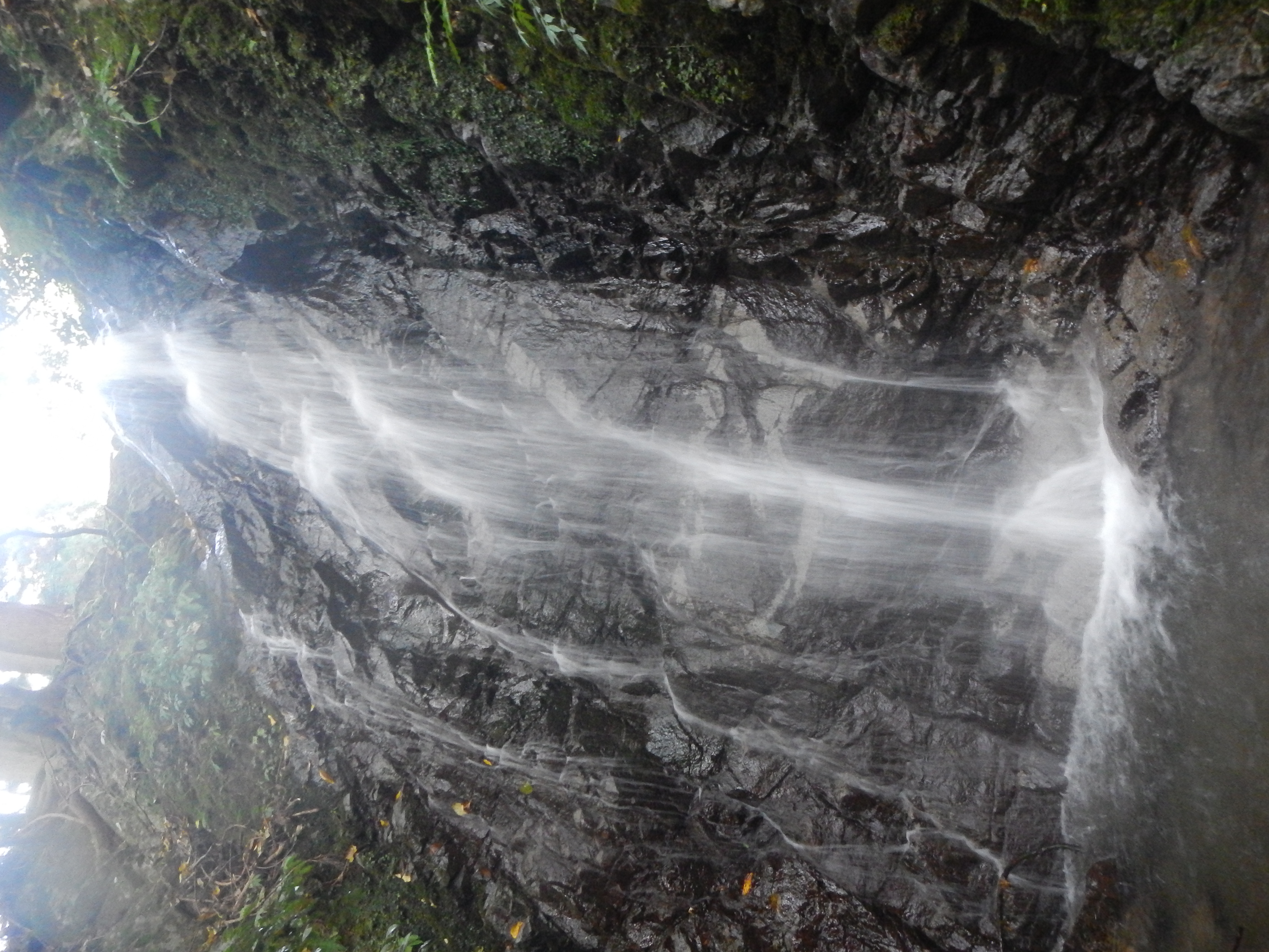 末広がりの滝、幾筋もの白糸のような水が歌うように流れ落ち、ほんとうに、滝がおいでおいでと誘っているようですね。
