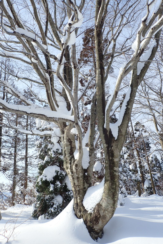 積雪量のメルクマールとなる、ブナの木に付けられた山頂標識はまだ3m以上も上にあった。あの位置に取り付