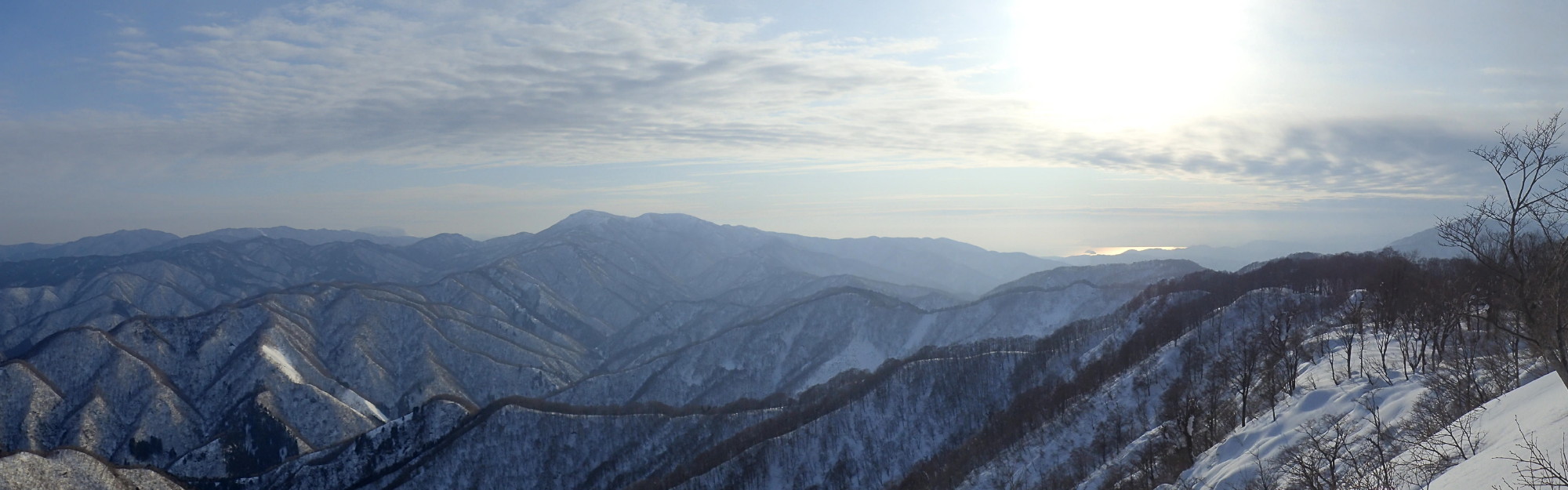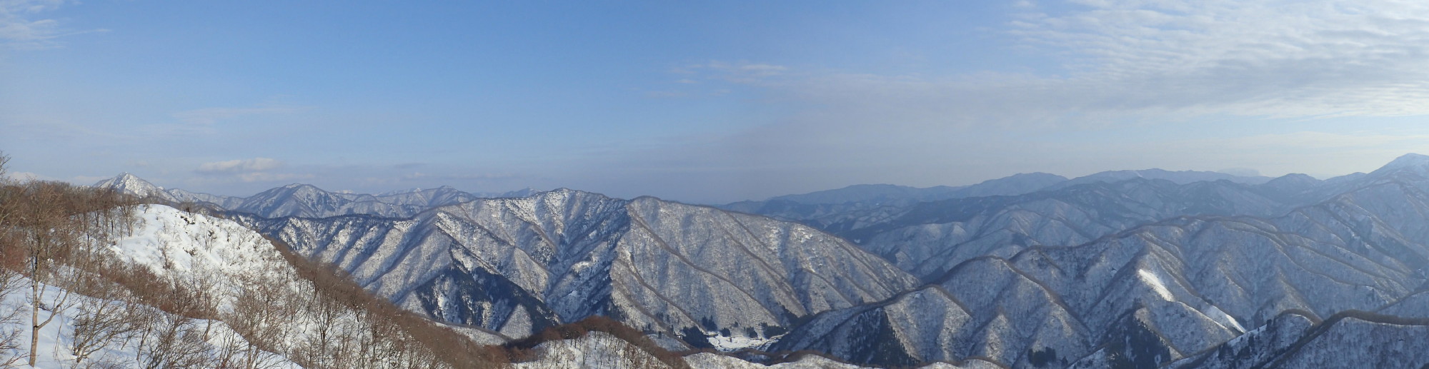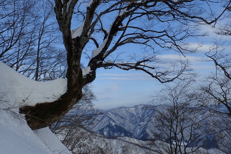 気温が高いせいか、遠くはやや霞がちで白山の姿は見えないが、三周や高丸は無雪期とは違う山のような姿を