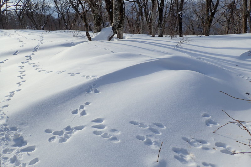 ここはまた動物の楽園でもあるようだ。雪面を縦横無尽にに走る兎の足跡が、美しい模様を描いていた。