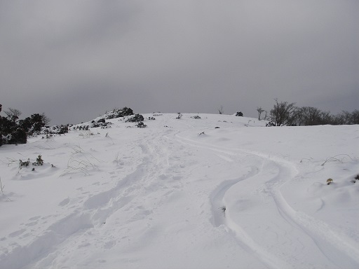 もう一つ奥にコブがあった。スキーを付けたまま最後は板を開いてバタバタと緩斜面を登りました。