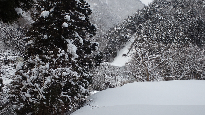 土曜日はみぞれが降ったのか、後から雨になったのか、夜叉龍神社のまわりは、湿った重い雪でした。