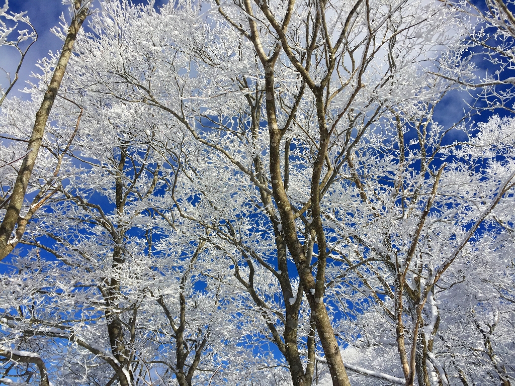 Soさん、Kiさん、お付き合い、ありがとうございました。ラッセル、ありがとうございました。青空の元、大パノラマと、濃紺の空をバックにした真っ白な霧氷を見ることができました。