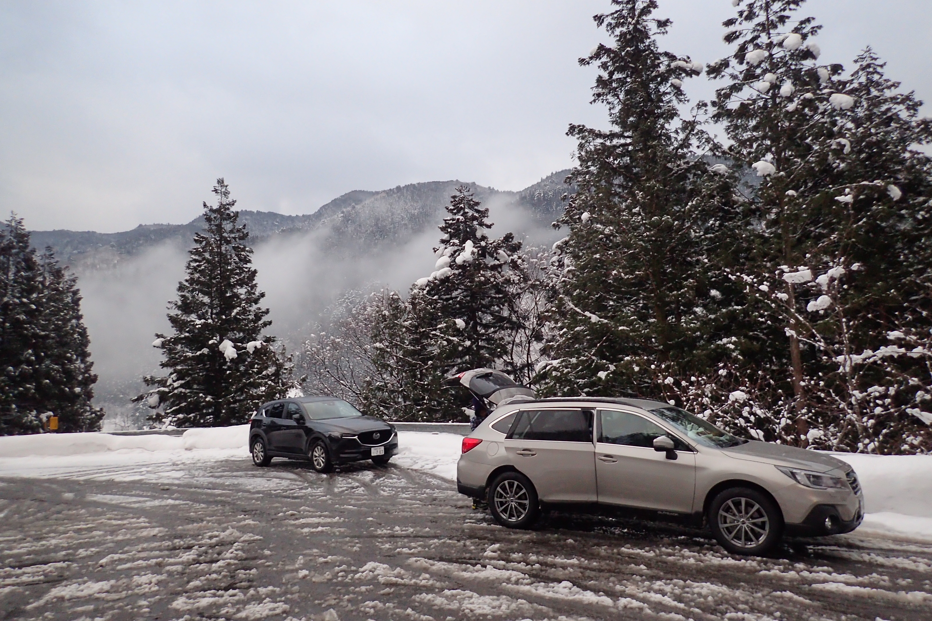 アプローチの八草トンネル越えも完全な積雪路。今シーズン初めてスタッドレスが威力を発揮した。