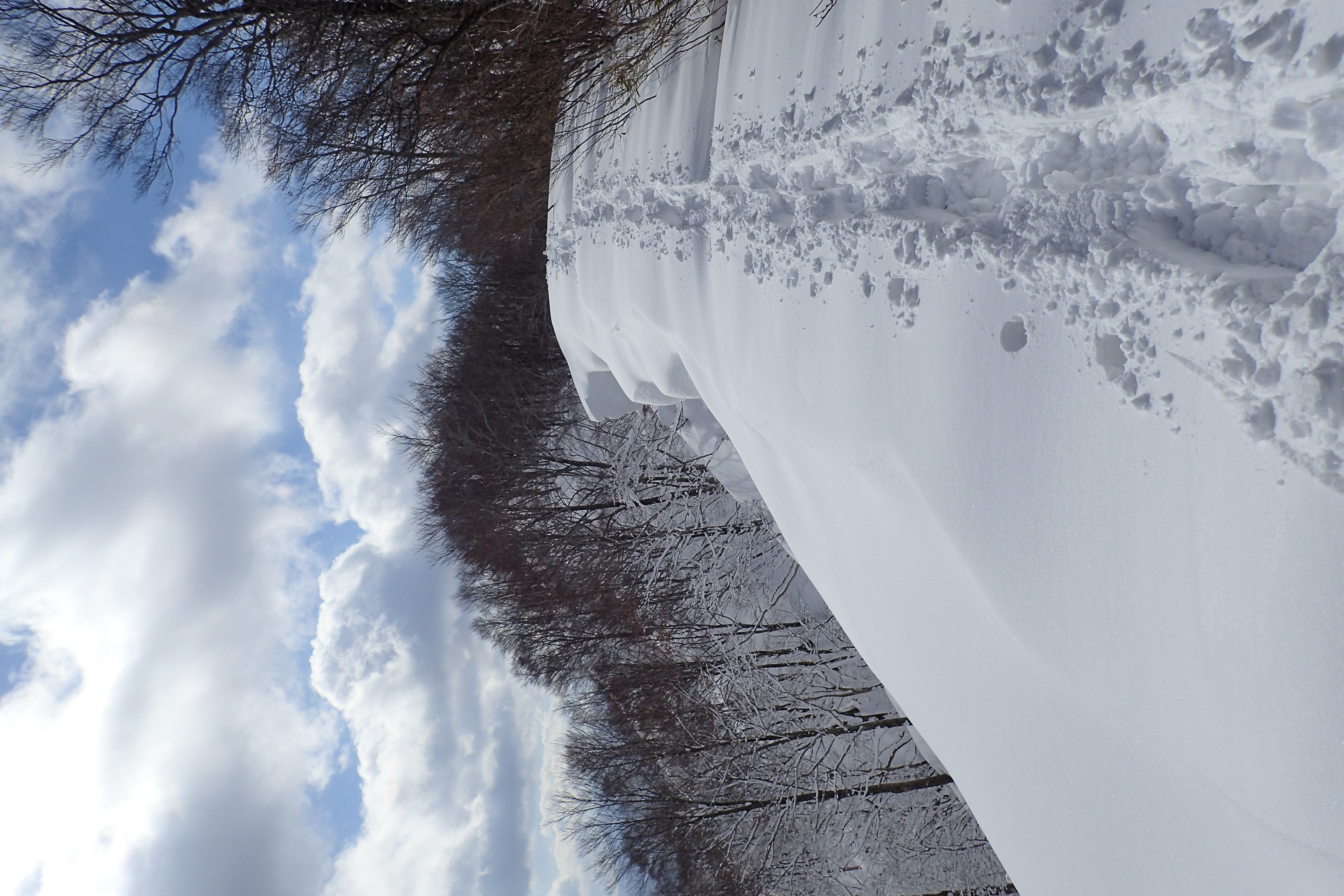 面だ。幸い新雪が柔らかいので、北側斜面寄りに不安なくトレースを刻むことができた。