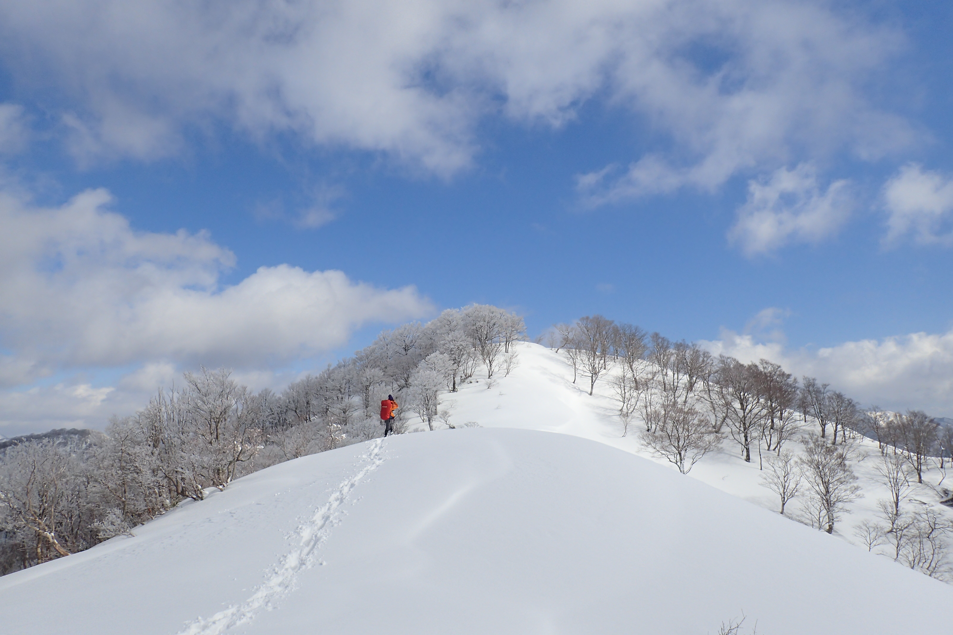 このゆったりとした雪の台地、広大な雪尾根は心が一気に解放されます。
