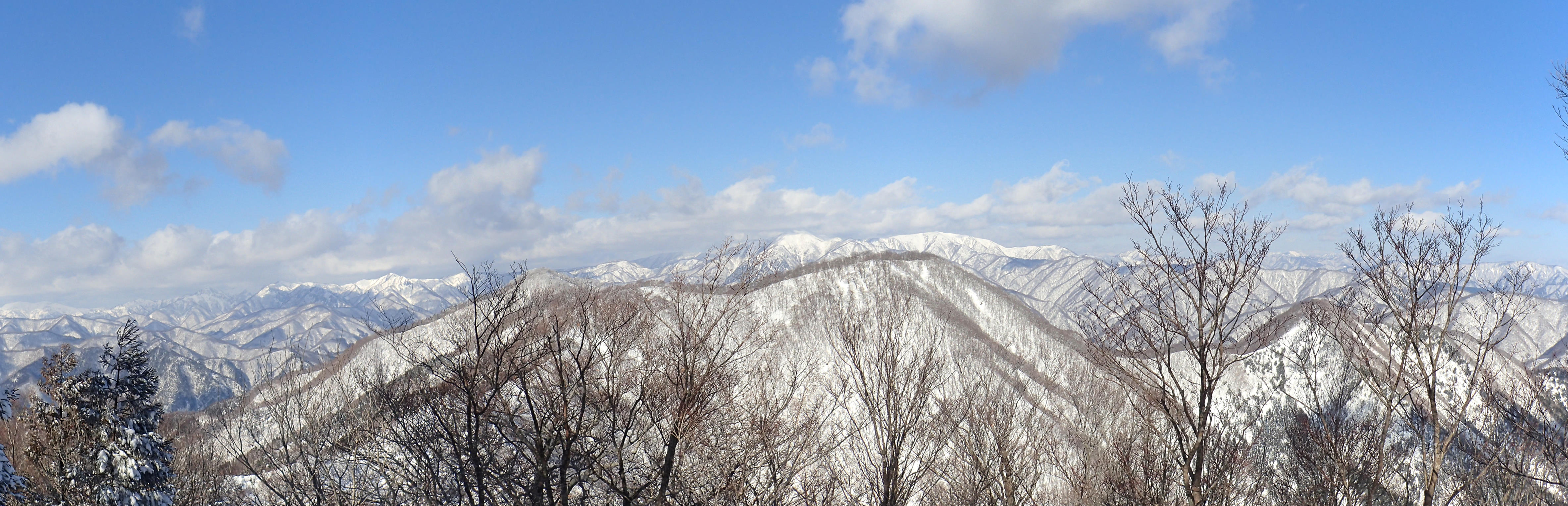 間近に見えるのは上谷山と鏡山。その奥には金草岳から冠山、若丸山、能郷白山、屏風山、平家岳、滝波山へと続く