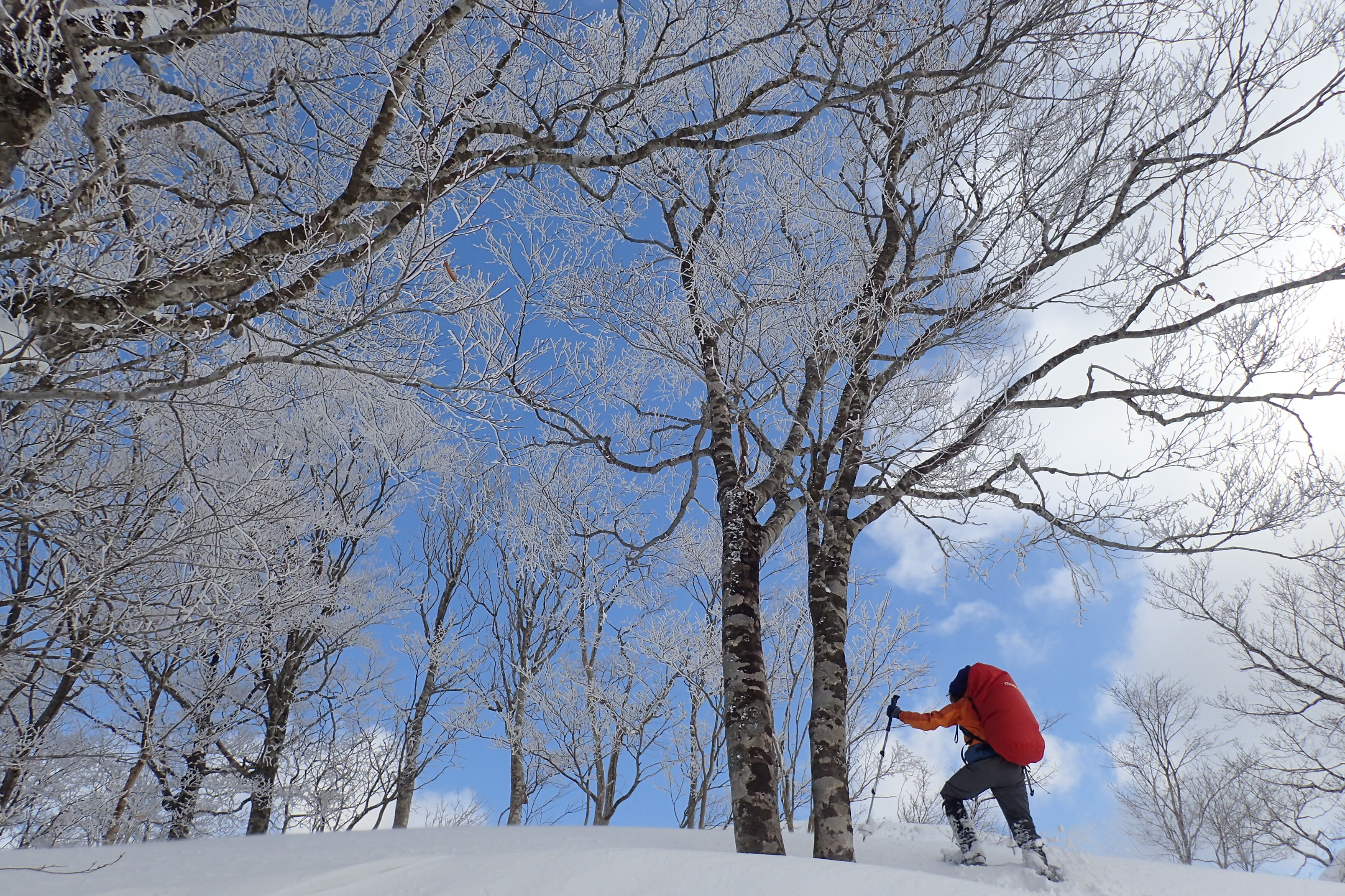 下りの尾根も面白かったです。真直ぐにどんどん下る尾根でした。しばらく霧氷も愛でることが出来ました。
