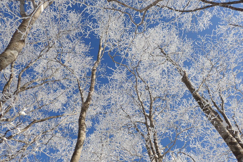ふと前方に視線を遣ると、これまでとは違う木の白さが眼に飛び込んで来た。正真正銘の霧氷だ。