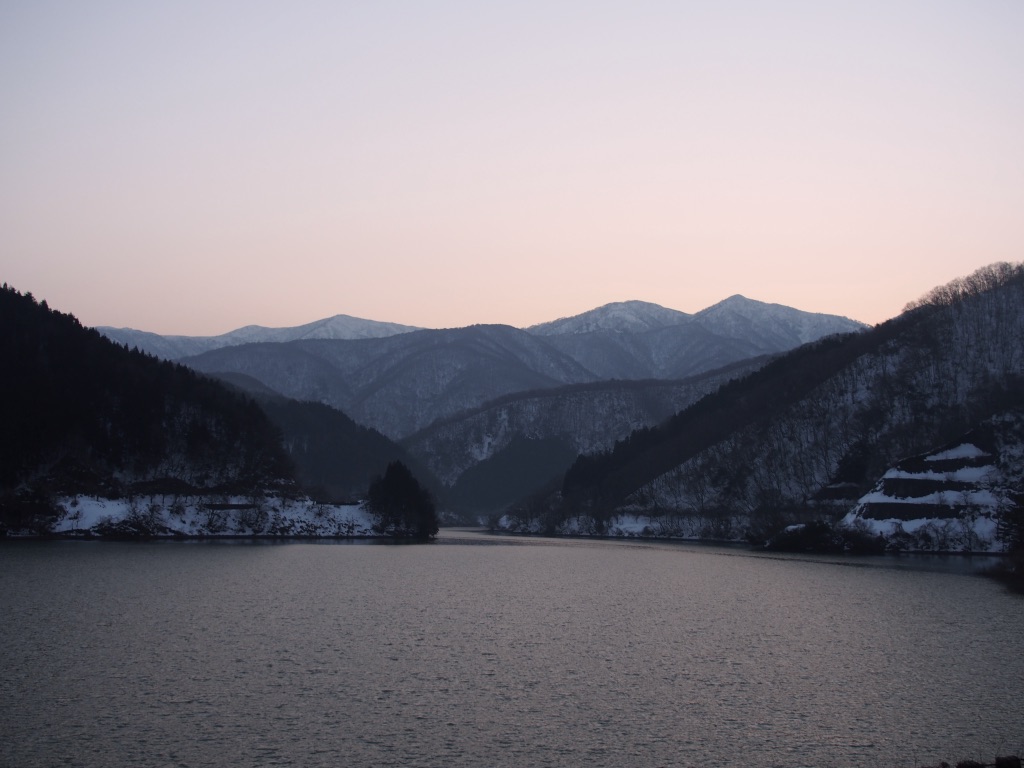 ついでとはいえダムから日の出前のラベンダー色に染まる湖面の彼方に望む美濃俣丸から笹ヶ峰への稜線の景色も楽しみにであった。