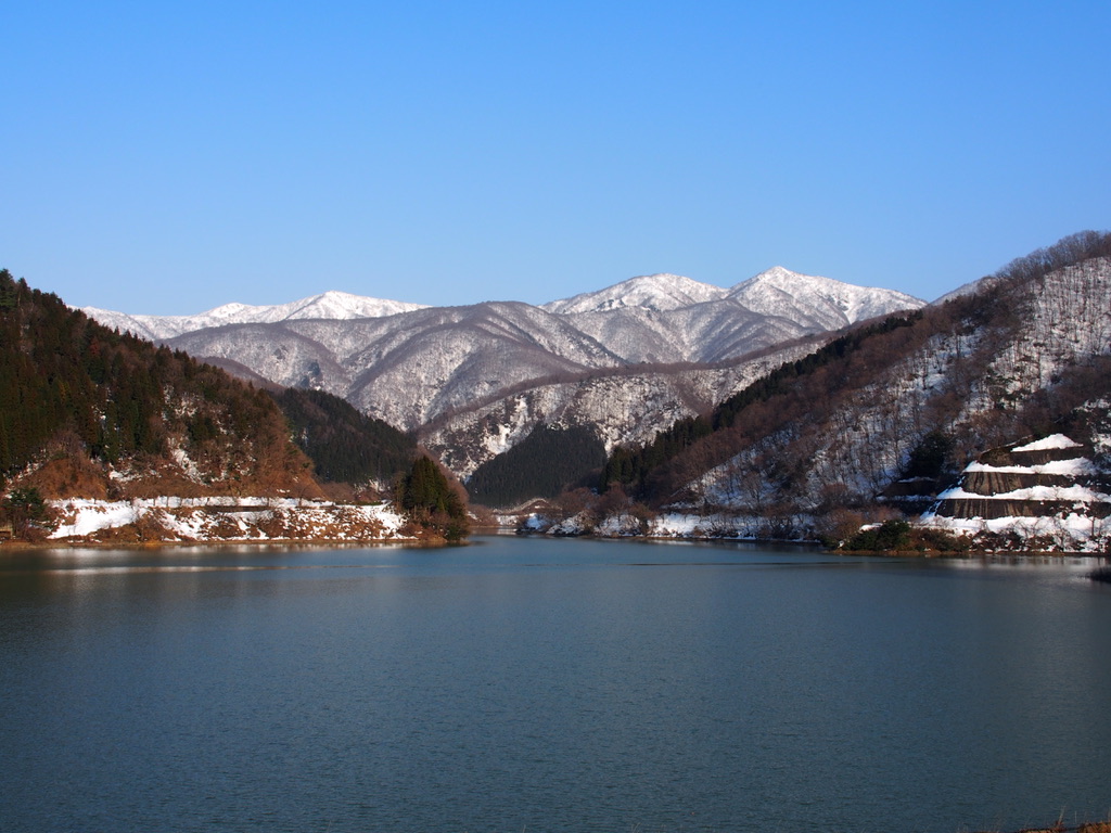 浄水場まで歩いて戻るとKeikokuさんたちの車がs浄水場から出てこられたところだった。浄水場でNさんとお別れしてからCさんの車を回収しにダムに戻る。最後にもう一度、ダム湖畔からの美濃俣丸から笹ヶ峰にかけての稜線の写真を撮ろうと雪の上に足を乗せると朝にはガチガチであった雪を大きく踏み抜くことになる。