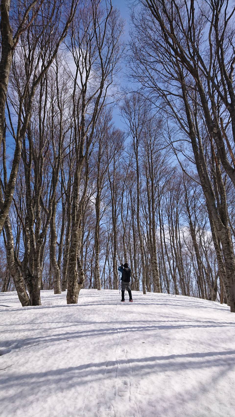 陽の光を受けて、白い雪の上に映し出されるいくつものブナの影。目の前に繰り広げられる光景に立ち止まってうっとりする。