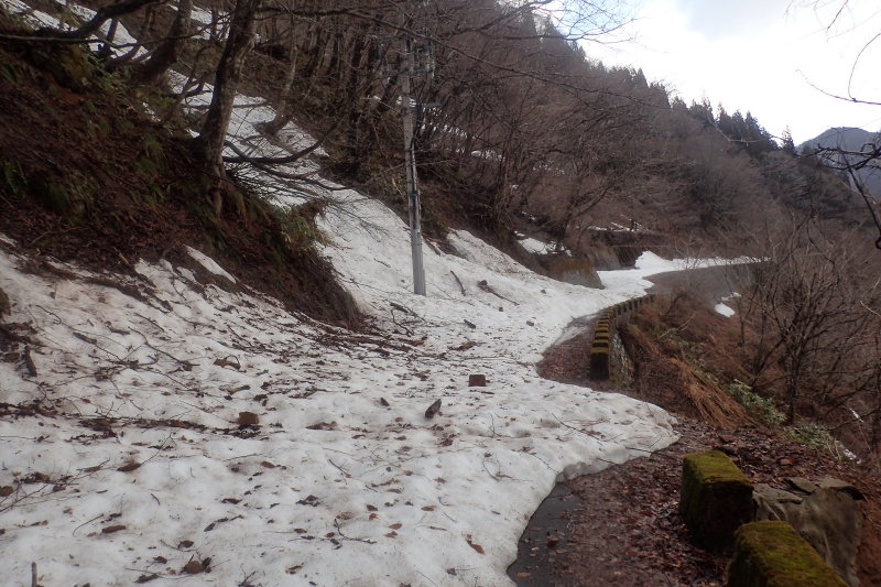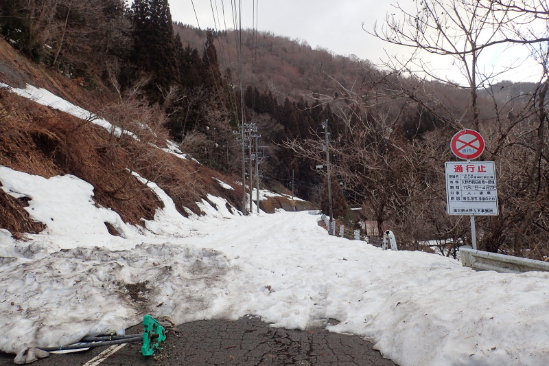 除雪は角野前坂の集落のはずれで終わっていた。石徹白ダムまでは車で入れるだろうと予想していたのだが、