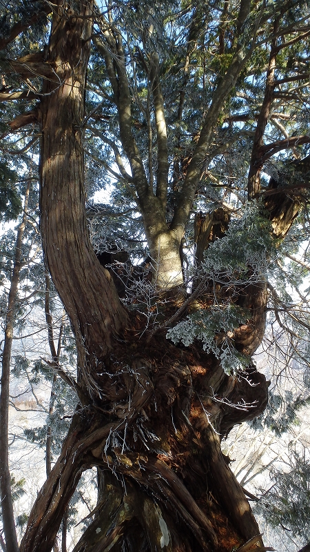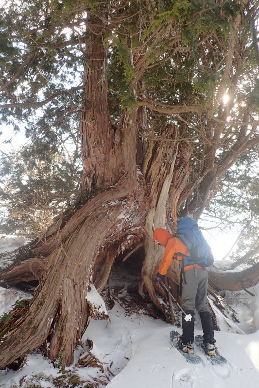 尾根上はこの地域特有のヒノキの巨木・怪木のオンパレードだ。そこに時折ミズナラの奇木も交わって、スッキ