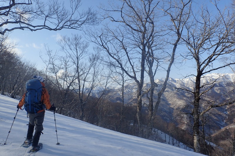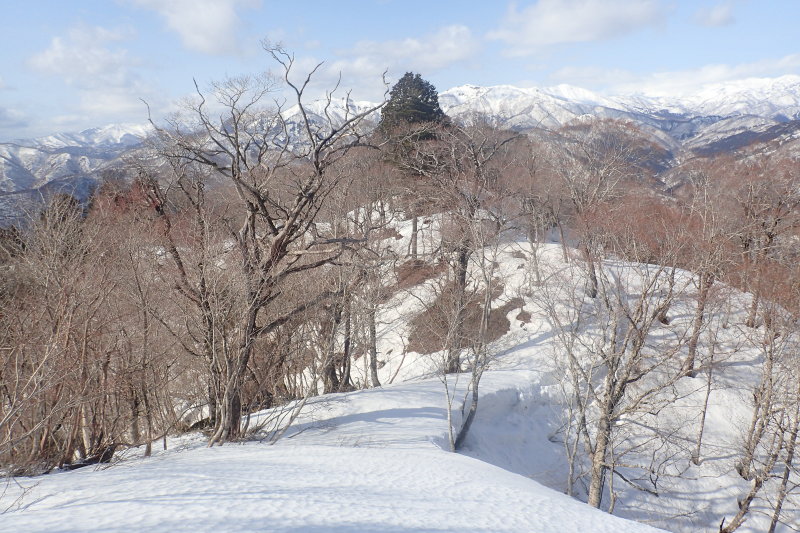 リした雪稜歩きではないが、独特の面白さがある。右手には常に小白山から枇杷倉山への稜線が高みから見下ろ