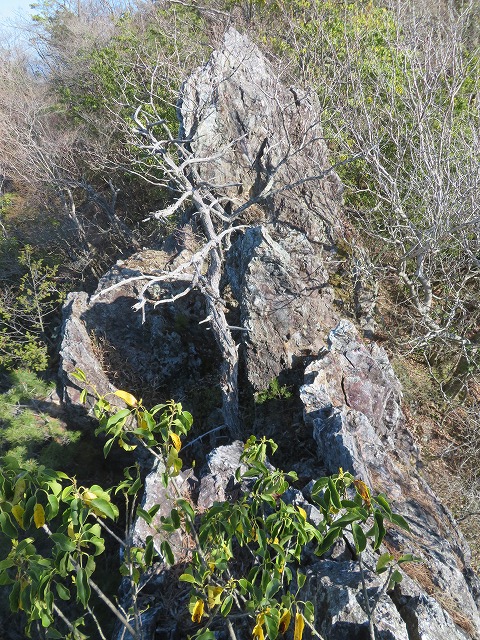 この尾根は岩場で少し危険ですが展望がいいのでいつも利用します。毘沙門山頂上直前で危険な