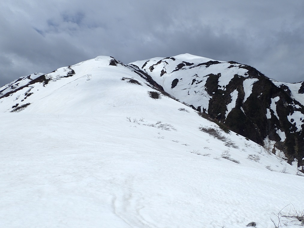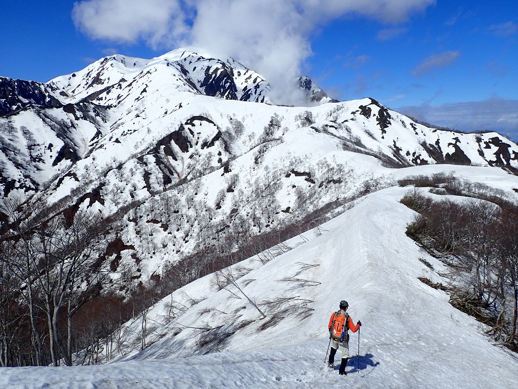 登山口の枝折峠にはまだアプローチできず、やっと入れるようになった銀山平から歩く。往復のコースタイムは12時間30分のロングルートだ。天気のせいか、登山者らしき人は全くいない。山中でも誰にも会わなかった。