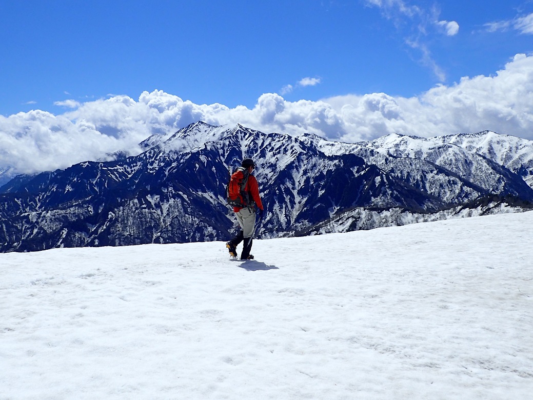 中ノ岳始め、迫力ある素晴らしい展望の下、順調に進み、昼には登頂できそうなペースだった。