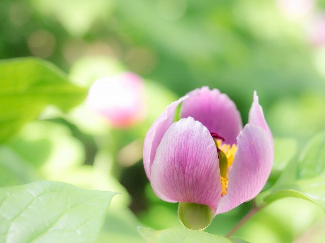 ベニバナヤマシャクヤクの花言葉は、はじらい、はにかみ、慎ましやか、とか。