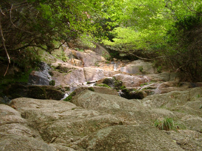 6月21日(月)9時40分、小岐須渓谷大石橋を出発。ヤケギ谷登山道に入って最初の堰堤を越えたところから入渓。