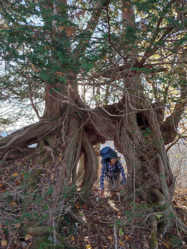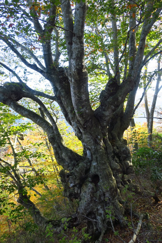 この尾根には2本の奇怪なブナの大木がある。あらぬ方向を枝を伸ばしたゴツゴツとした木肌のブナはアガ