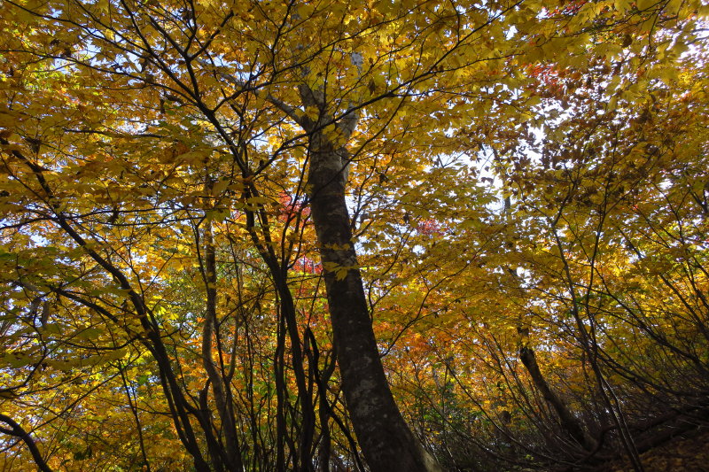 この尾根も色付いたシロモジが多く、体が黄色に染まってしまいそうだ。