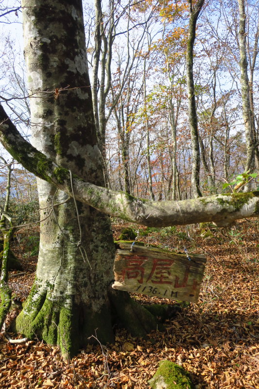 ブナの木々が静かに佇む高屋山の山頂は、ほっと落ち着く、気持ちのいい山頂でしたね。