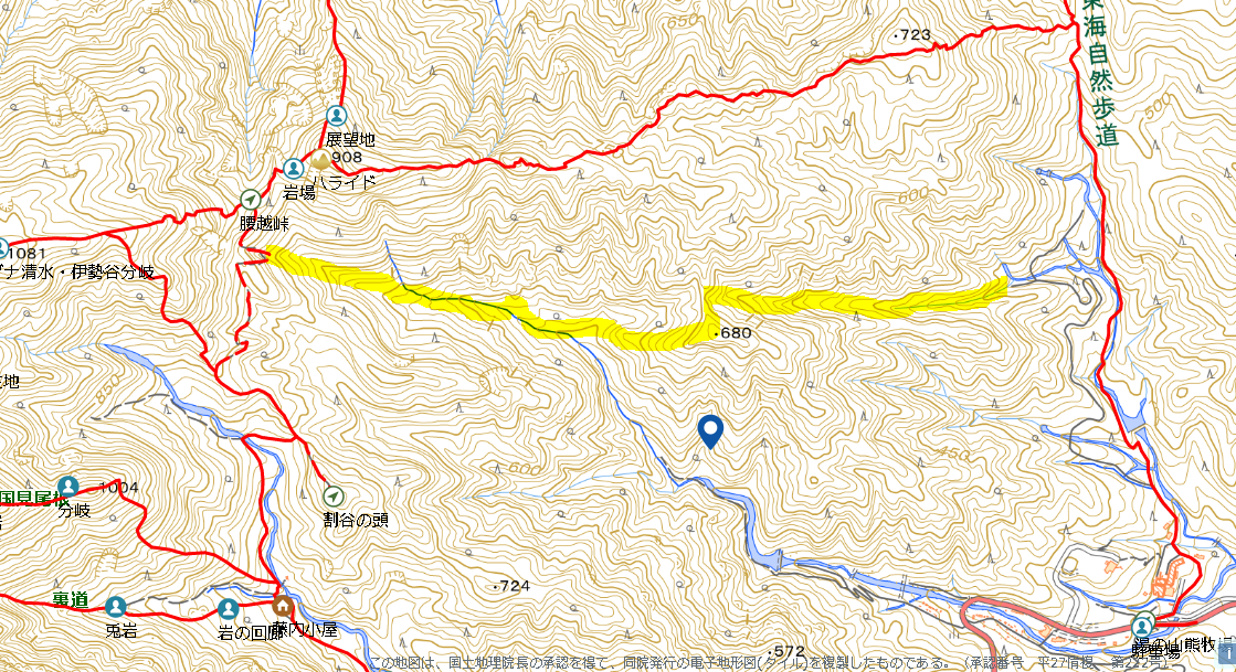 貼ってもらった地形図の「黄色の線なんだろうな」と思うだけ。