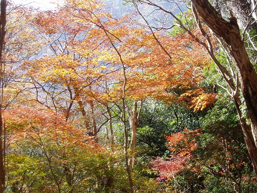 紅葉は期待したほど奇麗なものはなかったが、日当りの良いところには鮮やかな紅葉が見られた。