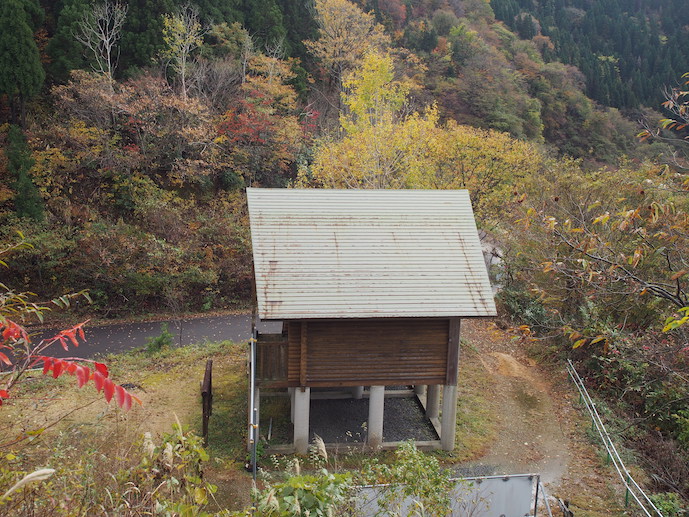 魚見峠は標高は600mほどあり、かなり高いところまで登ってゆく。ここにはきれいな小屋がありますね。快適に泊まれそうだけど、どういう人を対象に建てた小屋なんでしょう。