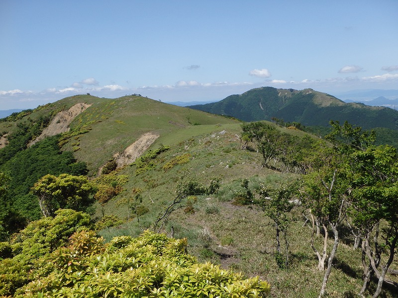 17年6月に縦走しましたが、その年もシャクナゲの花は見られませんでした。時期が遅かったのかも?急登が終わり尾根に乗るとシャクナゲの低木の藪の間を縫って迷路のような道が続く。以前、大峠に向かって逆にコースを辿ったことがあるが、シャクナゲの季節にも関わらず裏年だったせいかほとんどシャクナゲの花が見られなかった憶えがある。