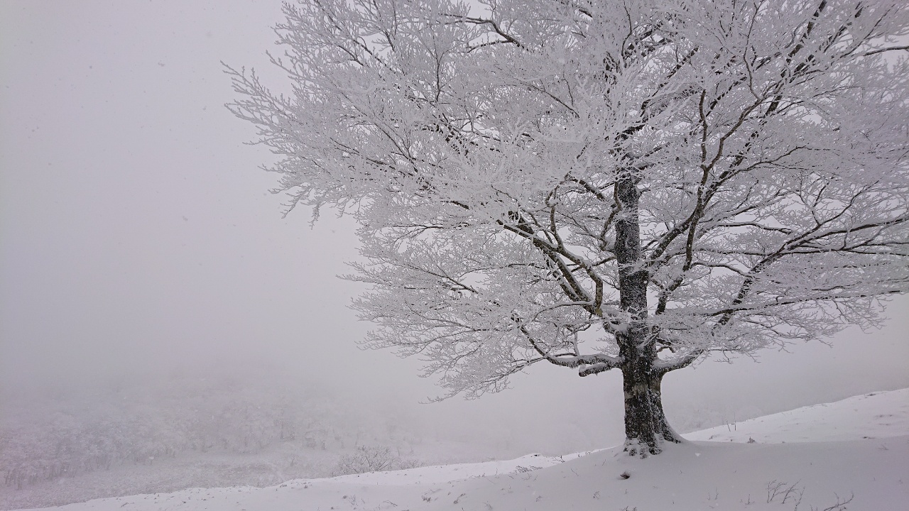 日常離れした大雪原とも、劇的に美しい霧氷の森とも、また違う世界。