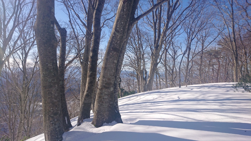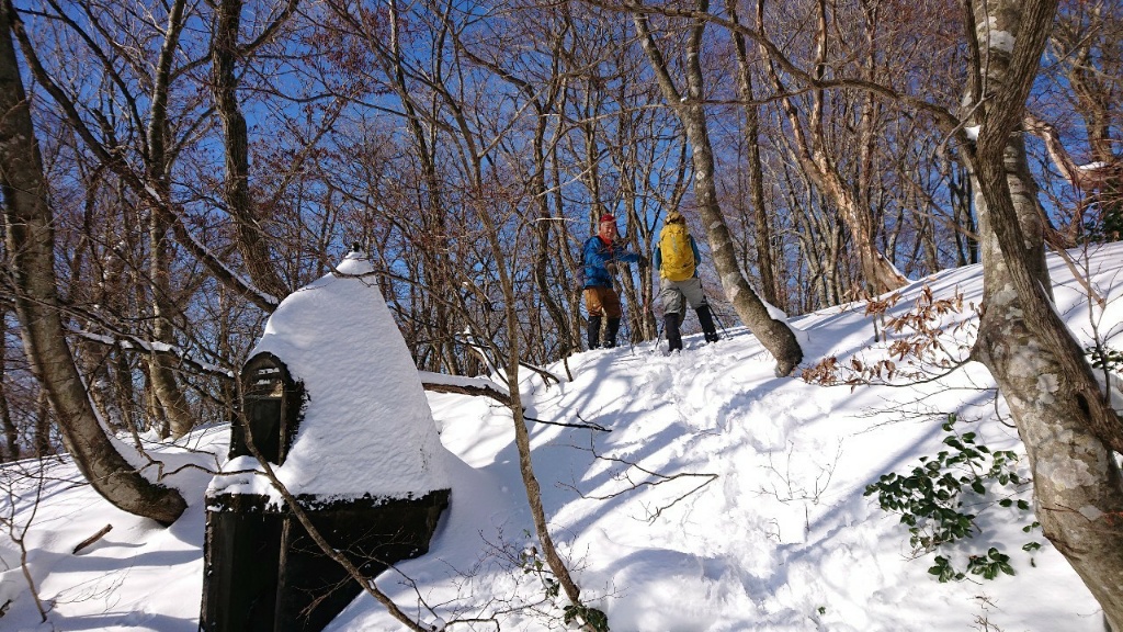 尾根に取りつくところの斜面の藪が埋まり切ってなくて、前はもっと楽にあがれたのになぁと思いながら登ってました。