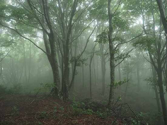 実に立派なブナの樹々が霧の中からめくるめく現れる樹林は写真を見返していても夢幻的でした。
