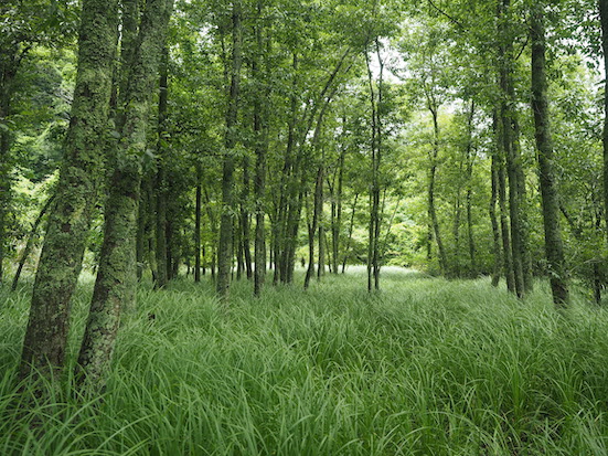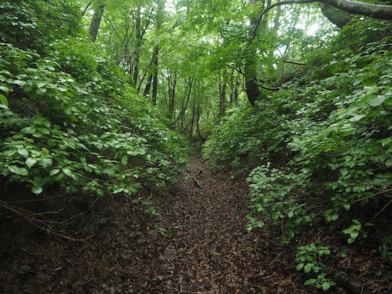 ナラの木主体の雑木の裏山の森。稜線に近付くとブナの木々にも出会える。