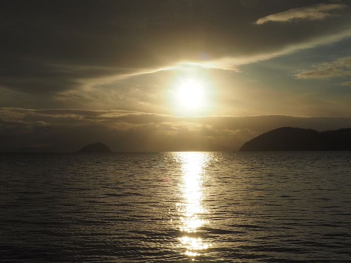 湖岸から日没を眺めることが出来れば良かったのですが