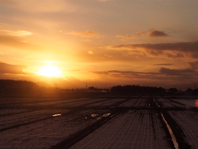 片山集落に到着し、湖辺を離れると太陽は急速に落ちてゆく。
